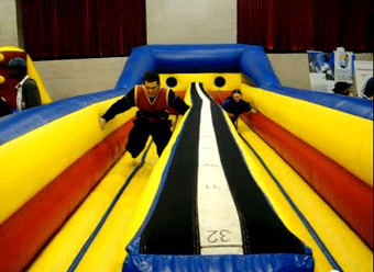 The Bungee Run is a great way to promote enjoyable and healthy activity, and will add excitement and value to any indoor or outdoor event! It’s a competition. Team building, win and take the glory. Competitors run with a Velcro batten and the person who places it the furthest along the run wins the round.